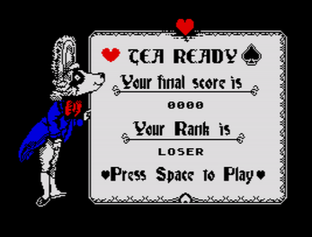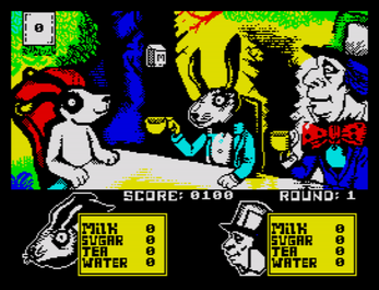 In the speccy version you can not only push the ingredient to the cup of the Mad Hatter, you also can throw the ingredient away (with the left key). Still no easy task!